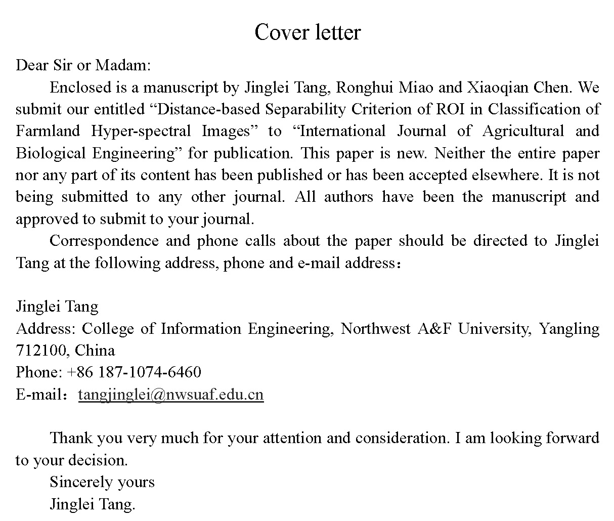 Distance-based separability criterion of ROI in classification of farmland hyper-spectral images
